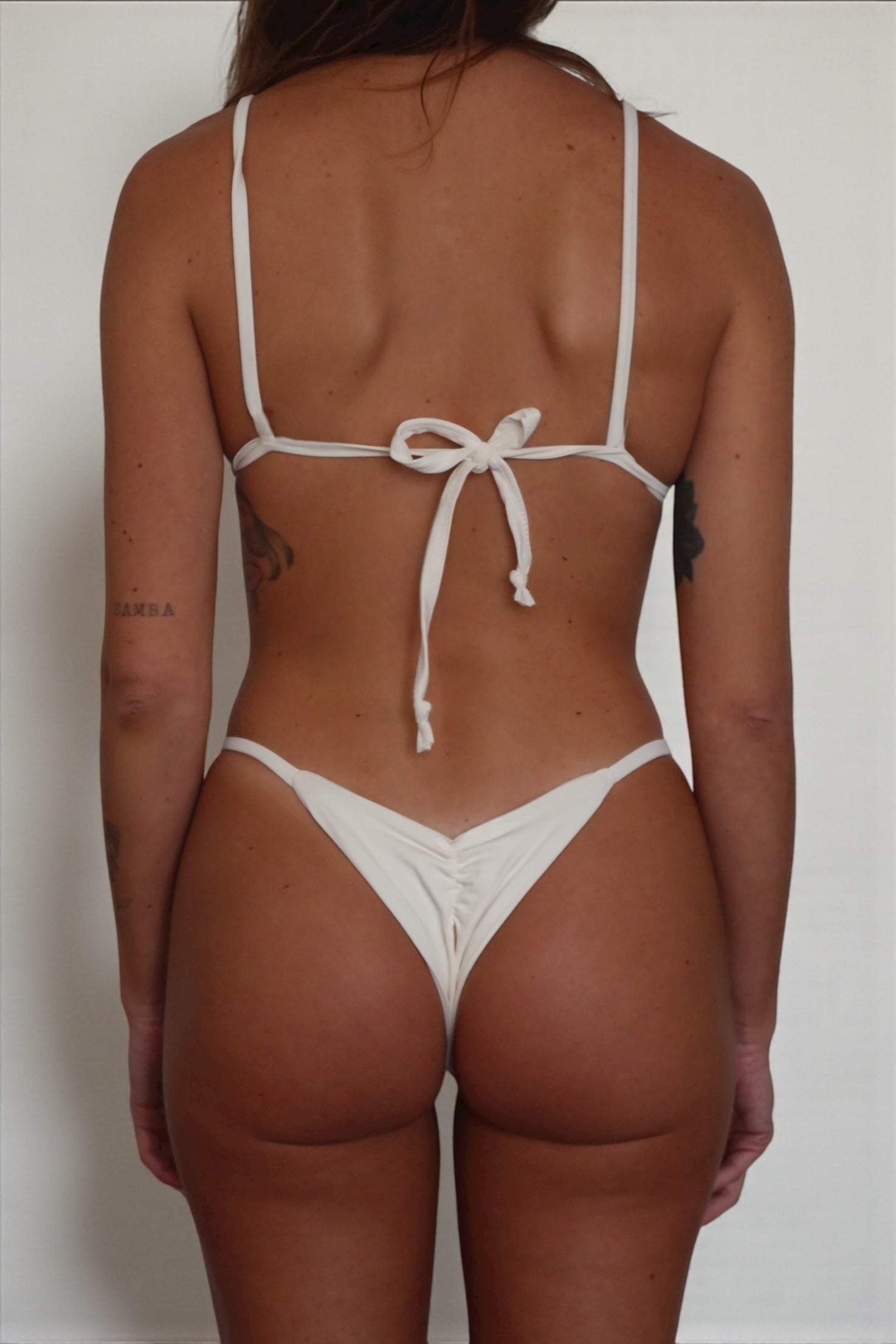 Top: Classic triangle with adjustable straps for a flawless fit. Bottom: Soft Brazilian Cut, designed with a center seam at the back to naturally enhance the shape of your booty !