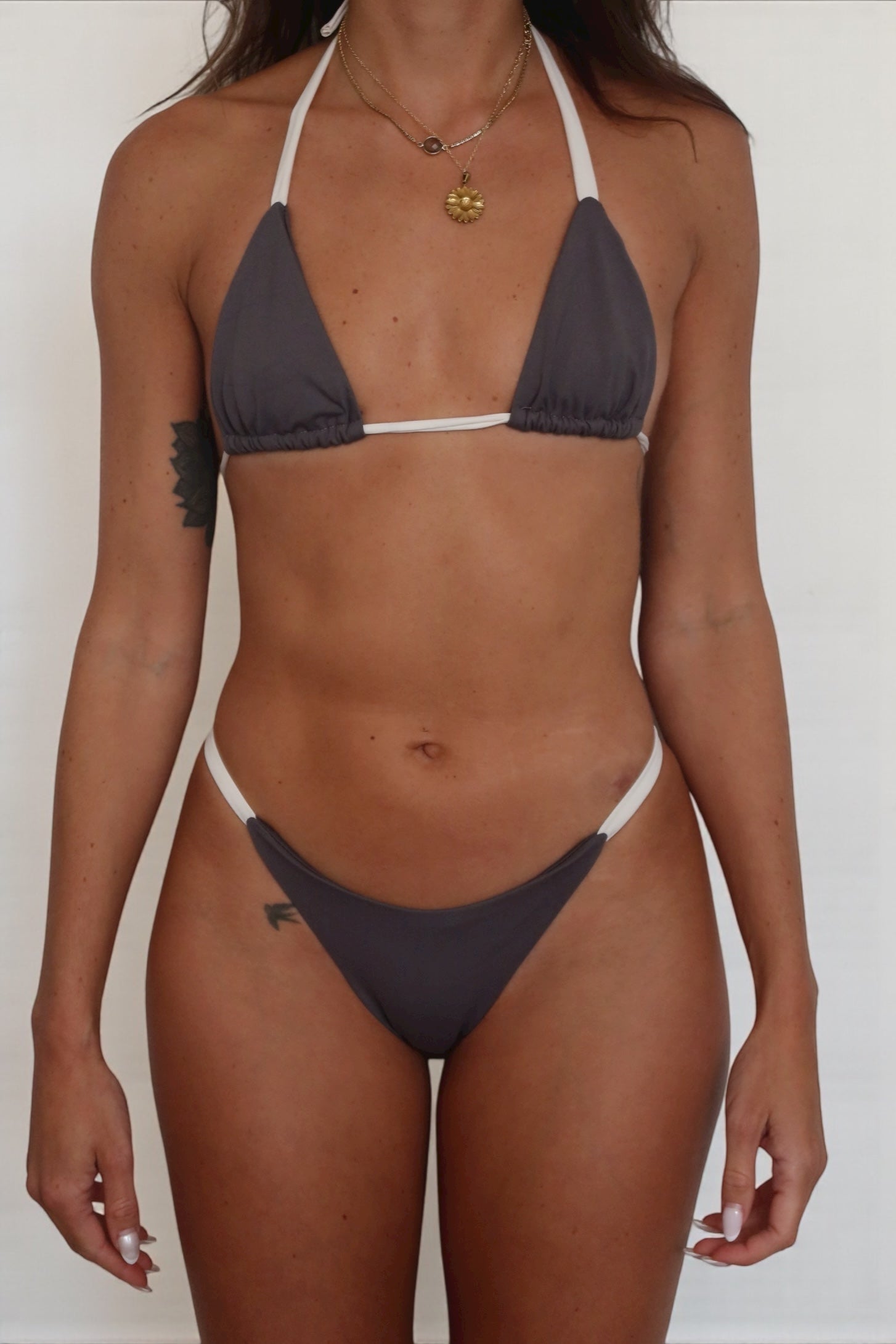 Top: Classic triangle with adjustable straps for a flawless fit. Bottom: Soft Brazilian Cut, designed with a center seam at the back to naturally enhance the shape of your booty !